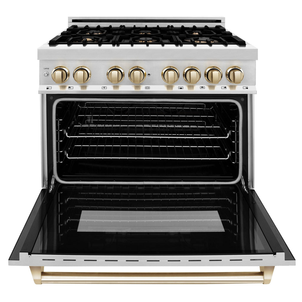 ZLINE Autograph Edition 36" 4.6 cu. ft. Dual Fuel Range with Gas Stove and Electric Oven in Stainless Steel with Accents - RAZ-36