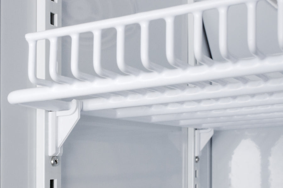 Inside, the ARS32PVBIADA utilizes adjustable cycle defrost operation to avoid temperature spikes. Optimized forced air cooling with an internal fan to ensure excellent temperature stability and uniformity with rapid recovery after door openings. The adjustable plastic-coated wire shelves can be positioned at 1/2" increments to accommodate virtually any sized item.