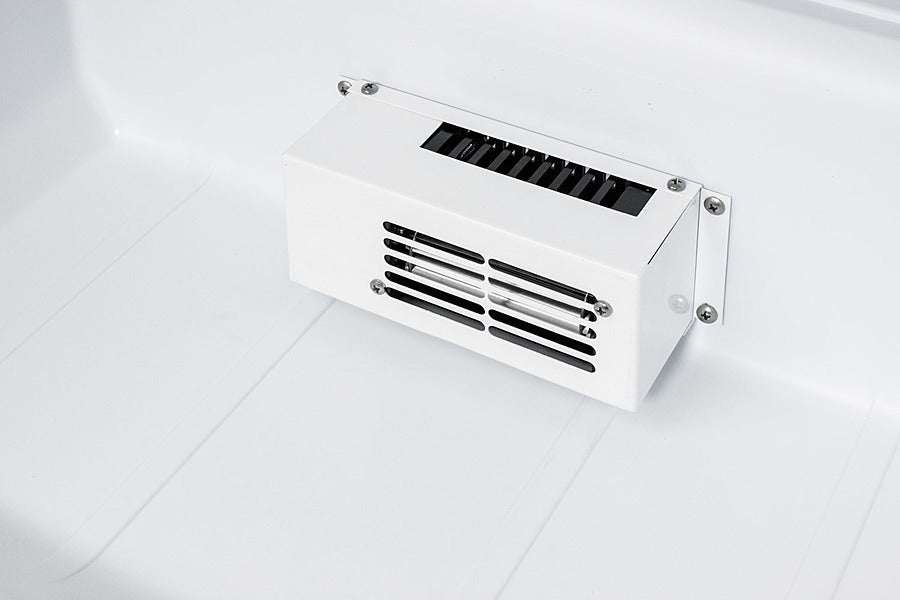 - Fully finished white cabinet: Allows the unit to be used freestanding