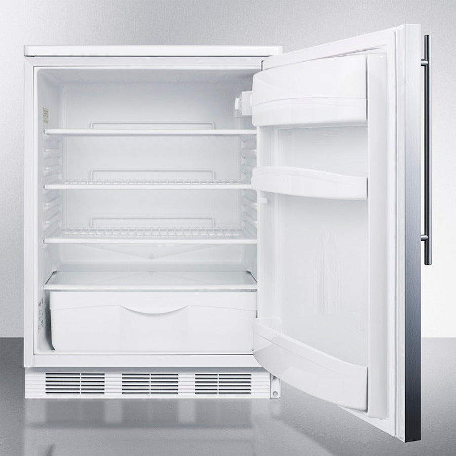 Accucold by Summit Appliance offers a wide range of all-refrigerators for general purpose storage. The FF6BI7 Series features commercially listed all-refrigerators for built-in under-counter installation, with automatic defrost and deluxe interiors designed for maximum storage convenience.