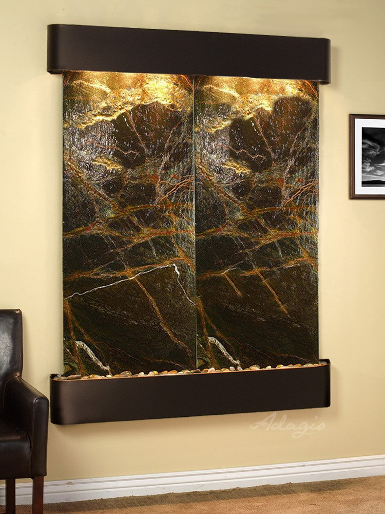 Our indoor water fountains are easy to install and maintain. This two surface feature has no gap between them perfect for a company logo.