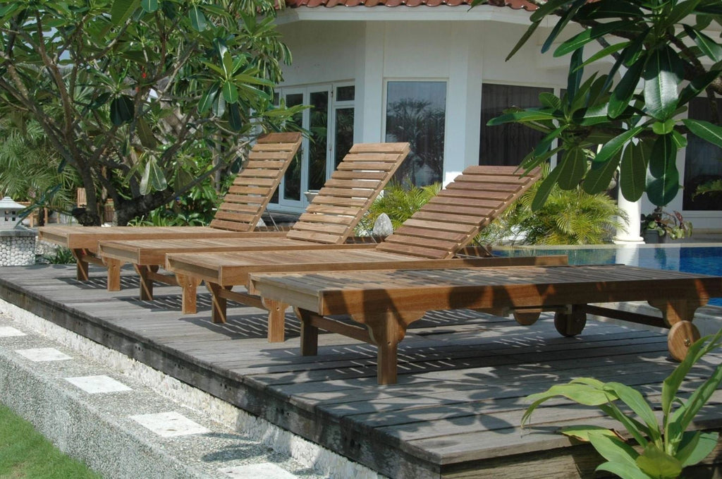 The Capri Classic Sun Lounger with Adjustable Back & Side Tray is the perfect sun lounger for your pool and patio. Our most popular piece, the Sun Lounger has been called by some "The most comfortable Sun Lounger they have ever relaxed in." Perfect for poolside reading in the sun, the lounger features a convenient drawer that slides out, and when not in use they conveniently slide back into the Lounger. The Capri Lounger adjusts to four different seating positions, including completely flat. For added lounging comfort add cushions with Sunbrella All-Weather Cushions; saturated with UV stable pigments that resist color fade, water, mold and mildew perfect for the outdoors. With its solid teak wheels, it can be easily moved for storage in and out of the sun.