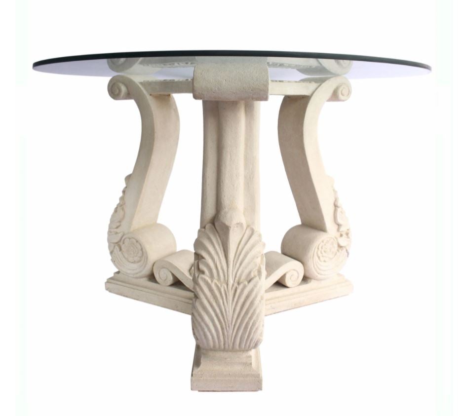 The Regency 42" Round Entry Hallway Table is perfectly dimensioned for any size room. The simple scrollwork design allows it to complement any decor. Created of cast limestone, this table and its design will last for generations.