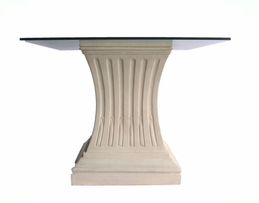 The simplicity of a classic design allows the Legacy 36" Square Dining Table to be matched with a variety of dining chairs to blend with any decor. The simple curves complement any design and will never go out of style. Constructed of cast limestone, this table base is sturdy enough for a variety of sizes glass table tops to be used indoor or outdoor.