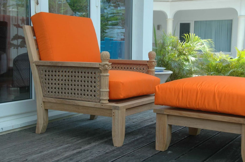 Luxe Deep Seating Armchair together with the ottoman indulges whoever seat on this pieces. The armchair style provides elegance, comfort and uniqueness for your backyard area. One of a kind finial artichoke handcrafted by the professional carpenter. Yet, it built with extra thick premium grade A Teak and Sunbrella cushions to last generations.