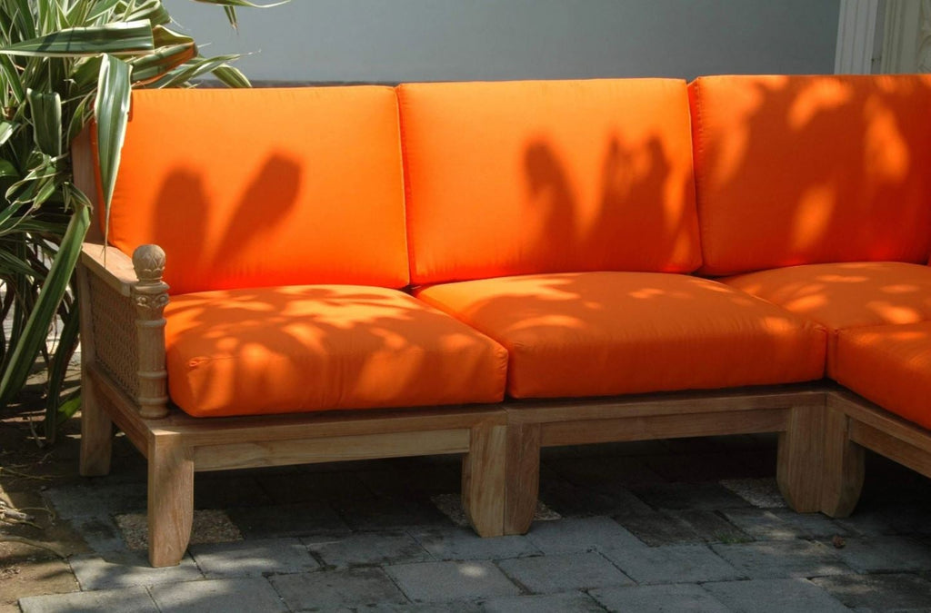 The Luxe Modular Seating Collection exhibits classic elegance with intricate detailing that provides modern comfort. The modular style provides flexibility to accommodate any decor. Built with extra thick Grade A Teak and Sunbrella cushions to last for generations. It comes in knocked down, with easy assembly.