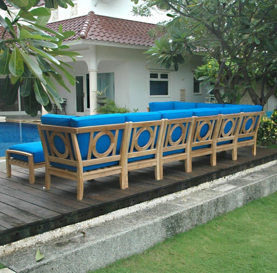 Natsepa Collection is the newest addition to our Deep Seating Collection. The deep seating group, is expertly crafted using the world's finest teak, coupled with the strength of mortise & tenon joinery. Bring the comfort of your inside living room outdoors with the combination of weather resistant teak and Sunbrellafabric. With the Corner, Center, and Ottoman modular style provides flexibility to accommodate any decor, size and shape of the backyard. All cushions are constructed with quality thick foam, beautiful shape and comfortable that will last outdoors without mildew and minimal discoloration for years. It comes in knocked down with easy assembly. Picture shown in Sunbrella Canvas Pacific Blue. Different fabric colors are available.