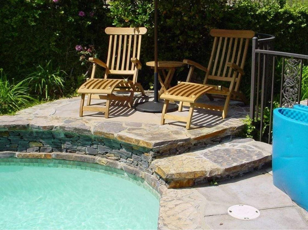 Relax in Titanic Style! Perfect for that backyard Patio, Pool or Garden. Don't compare with redwood, pressed wood, mahogany or even cedar for quality! Teak- means highest durability and maximum beauty! More comfort, beauty, and durability! It comes with 2 royal steamer armchairs and 1 Bahama folding side table. Umbrella and umbrella base are not included.