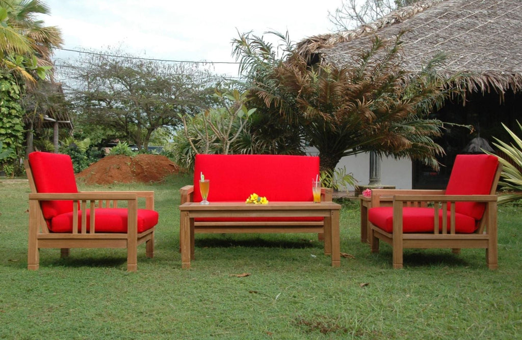 The newest addition to our SouthBay Collection, the deep seating group, is expertly crafted using the world's finest teak, coupled with the strength of mortise and tenon joinery. Bring the comfort of your inside living room outdoors with the combination of weather resistant teak and Sunbrella fabric. The armchair, loveseat, sofa, and ottoman are all constructed with 27″ wide and 8″ thick beautiful comfortable cushions that will last outdoors without mildew, and minimal discoloration. It comes in knocked down, with easy assembly. Cushions are included.