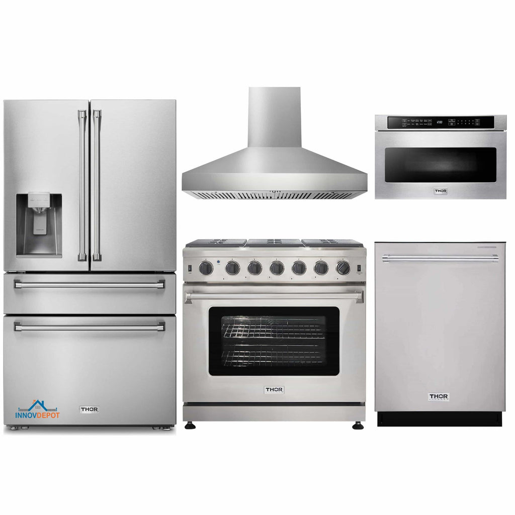 2. Thor Kitchen 36" French Door Refrigerator with Water Dispenser in Stainless Steel (TRF3601FD)