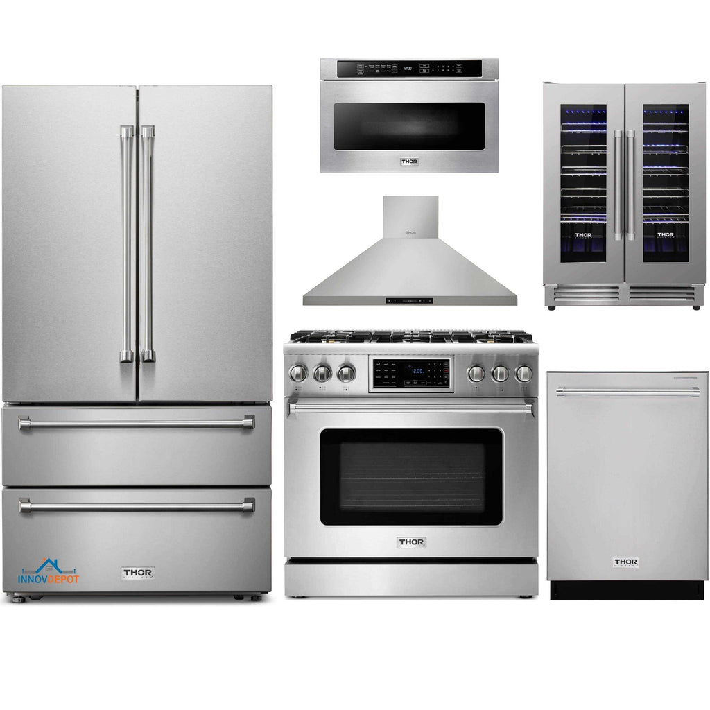 1. Thor Kitchen 36" 6.0 Cu. Ft. Professional Gas Range with Tilt Panel in Stainless Steel (TRG3601)