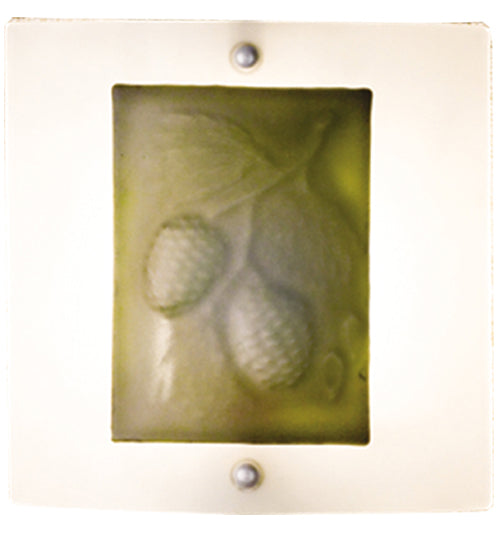 The Metro Fusion Pignioli ADA compliant wall sconce is the next best thing to nature. Made from hot cast Moss Green glass that is fused to clear glass, this pine and cone sconce shade is suspended by Nickel finished powder coated hardware. Designed and created by Meyda artists and craftsmen, to add the warmth of the outdoors to your home in a unique, contemporary fixture.