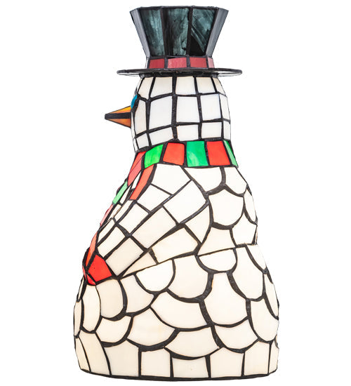 Meyda Tiffany presents the Snowman Accent Lamp. Tis the season to display a wonderful decorative accent lamp designed as the greatest gift giver of all time. The always warm and charming Santa Claus holiday sculpture is created in Winter White with Berry Red and Pine Green art glass accents and Blue eyes that will take the chill out of the coldest days. The lighted sculpture is handcrafted of individual pieces of stained glass using the famous Meyda Tiffany copperfoil construction process. Warm your heart and holiday spirit with this Snowman displayed on tabletops, countertops, mantels, and picture windows in fine homes nationwide. The Snowman Accent Lamp is included in our American-designed, handcrafted Holiday Collection. UL and cUL listed for dry locations.