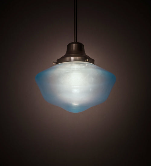 Handpainted Crystal Blue glass reflects an authentic classic design, a perfectly formed shade that was handcrafted with rich artisanship and style. Ideal for use in private residences, schools, galleries and libraries, this classic styled pendant is suspended with a rod and will illuminate a broad range of interiors today. The stunning pendant is enhanced with hardware featured in a Nickel finish. The lovely fixture is custom crafted in Upstate New York. Custom styles, colors, sizes and dimmable energy efficient lamping options such as LED are offered. UL and cUL listed for dry and damp locations.