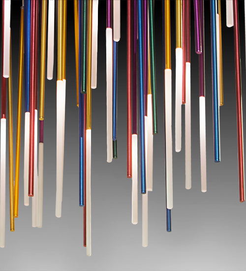 Like the colorful rays of the spectrum, Pae Kukuna features a brilliant array of colored aluminum tubular elements with an anodized finish and in varying sizes. 50 percent of the elements feature a Contrail Mist Idalight rod at the tip that illuminates with Meyda Lighting's integral energy efficient LEDs for a soft ambient glow.