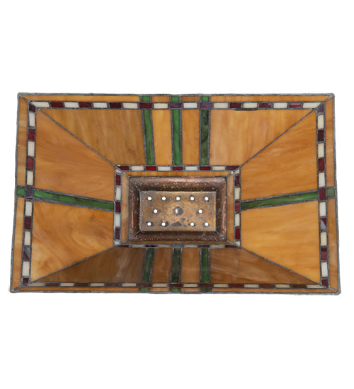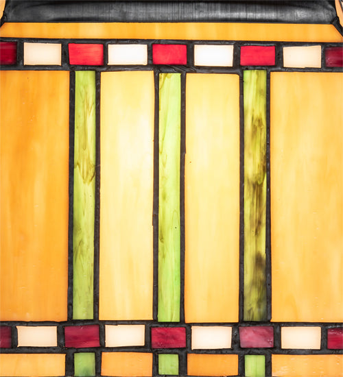 With a love of geometric forms, this lighting design interprets organic objects into simplified lines. Each Prairie Corn shade features rows of Chili Red and Wheat kernels and stalks of Bronzed Jade against a Maize Gold background. The art glass shade is created using the famous Meyda Tiffany copperfoil construction. Pairs well with bases to create table and floor lamps, or matches with hardware to create oblong ceiling or wall fixtures. Ideal for illuminating residential, hospitality, and commercial settings from Boston, Massachusetts, to Des Moines, Iowa, to Billings, Montana. The Prairie Corn Oblong Shade is included in our American-designed, handcrafted Mission Lighting Collection. Each shade is a unique work of art with color variations based on natural ingredients inherent in the glass.