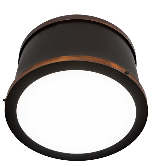 Designed with a clean round profile and refined styling. Cilindro Reel defines a distinctive sophisticated aesthetic. This custom ceiling fixture features an Oil Rubbed Bronze finished frame highlighted with handsome Vintage Copper accents. The fixture is enhanced with a Statuario Idalight bottom diffuser.