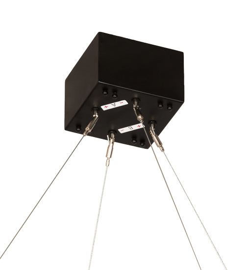 A modern sophisticated pendant featuring a spectral halo of ambient light. Eliminating the power cord, our exclusive proprietary suspension system is engineered with low voltage spacecraft cables for balance and precision. This Blackwash finished ring reveals a Statuario Idalight diffuser. Integral LEDs deliver dimmable, robust illumination, energy savings, minimal maintenance and long life. The overall height ranges from 36 to 172 inches as the cable length can be easily adjusted in the field to accommodate your specific lighting application needs. Handcrafted by skilled artisans in our 180,000 square foot manufacturing facility in Yorkville, New York. Available in a wide range of custom choices including various finishes and sizes.