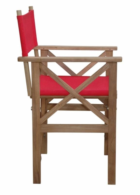 Become the director of your own home and yard with the Director Folding Armchair. Made from solid teak wood finished in a water base sealer, the chair utilizes Sunbrella fabric for back and seating support saturated with UV-stable pigments that resist color fade, water, mold, and mildew – creating the ideal combination for prolonged outdoor use and ensuring outdoor fitness. Easily foldable for quick storage and easy movement. No assembly required.