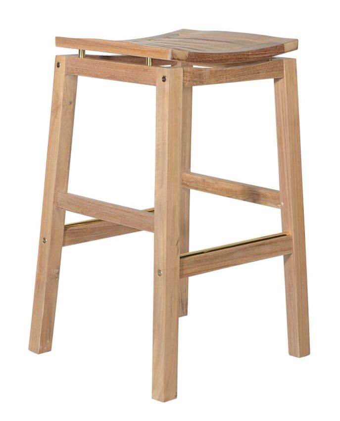 Enjoy a pint of ale in relaxation with this Winston backless bar chair. Sculpted saddled seats elevated for comfort design and sturdy footrest with aluminum to protect the footrest from worn out. It will make any evening of gathering and drinking a pleasant and comfortable experience. Constructed from all solid Grade A Teak wood in the natural sanded and smooth finish.