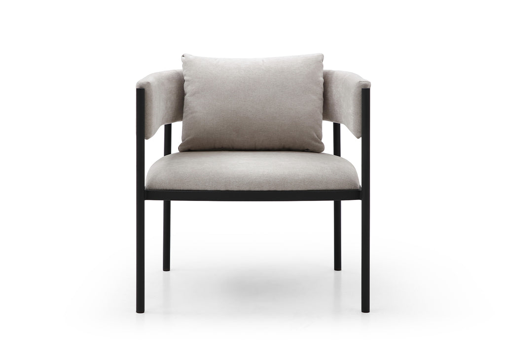 Envie Accent Chair, Light Grey Fabric, with Back Cushion, Legs in Sanded Black Coated Steel.
