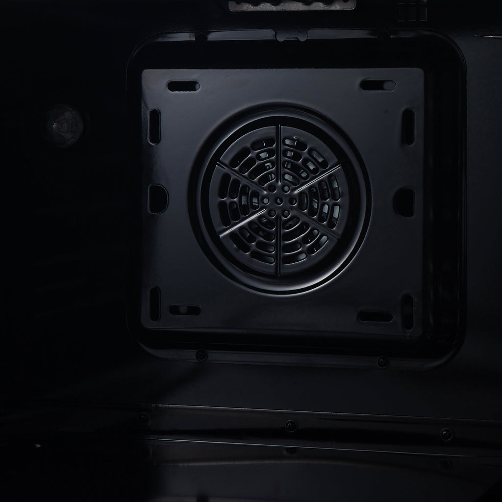 • 3-Layer Glass Oven Door: Insulated oven door with smooth friction hinges provides safety, energy efficiency, and durability.