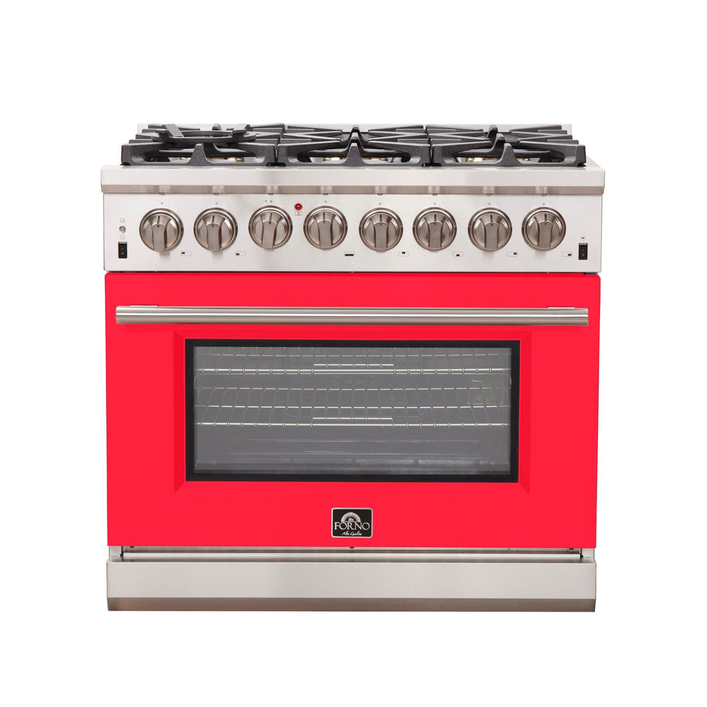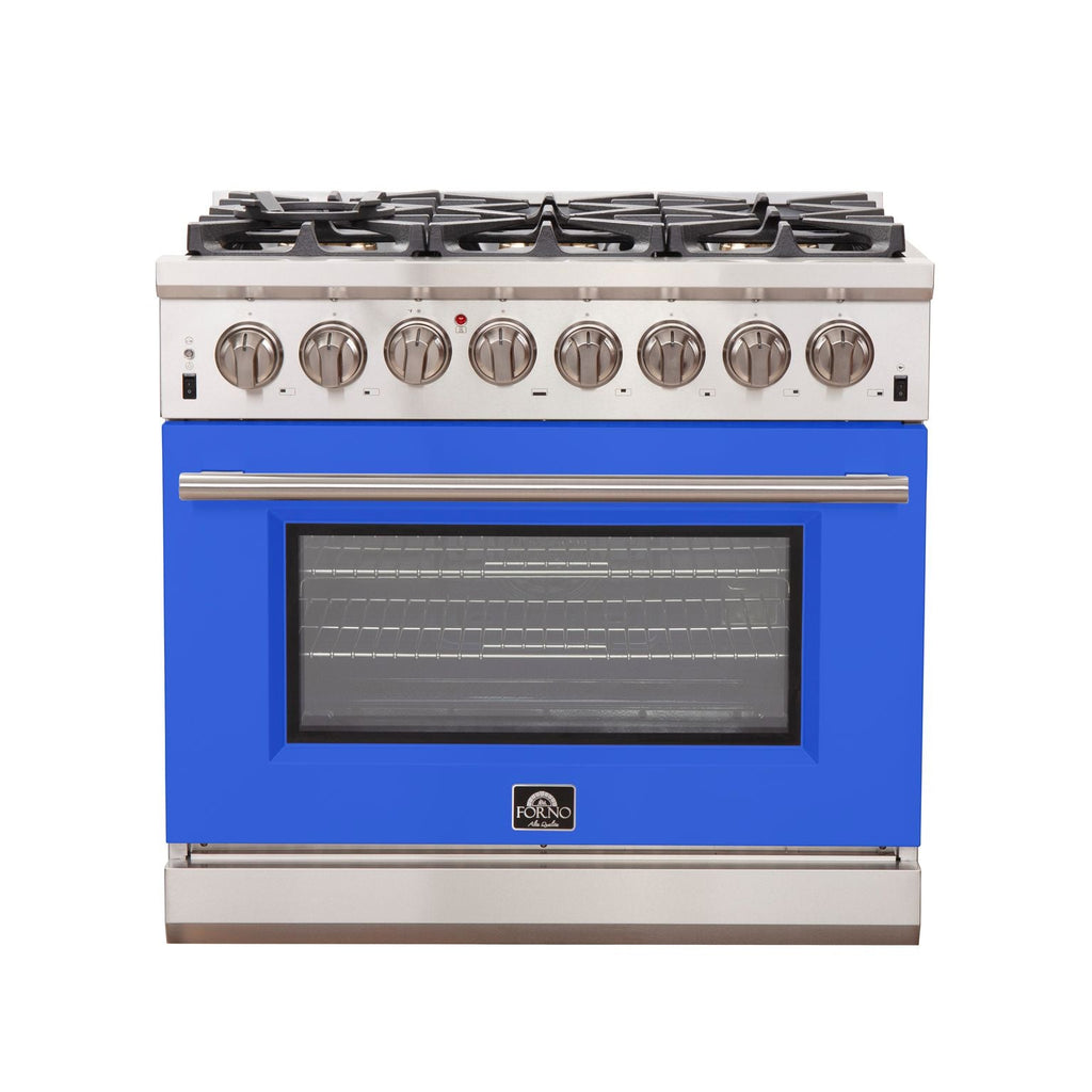 FORNO Capriasca - Titanium Professional 36" Freestanding Dual Fuel Electric 240V Colored Door Oven Range FFSGS6187-36