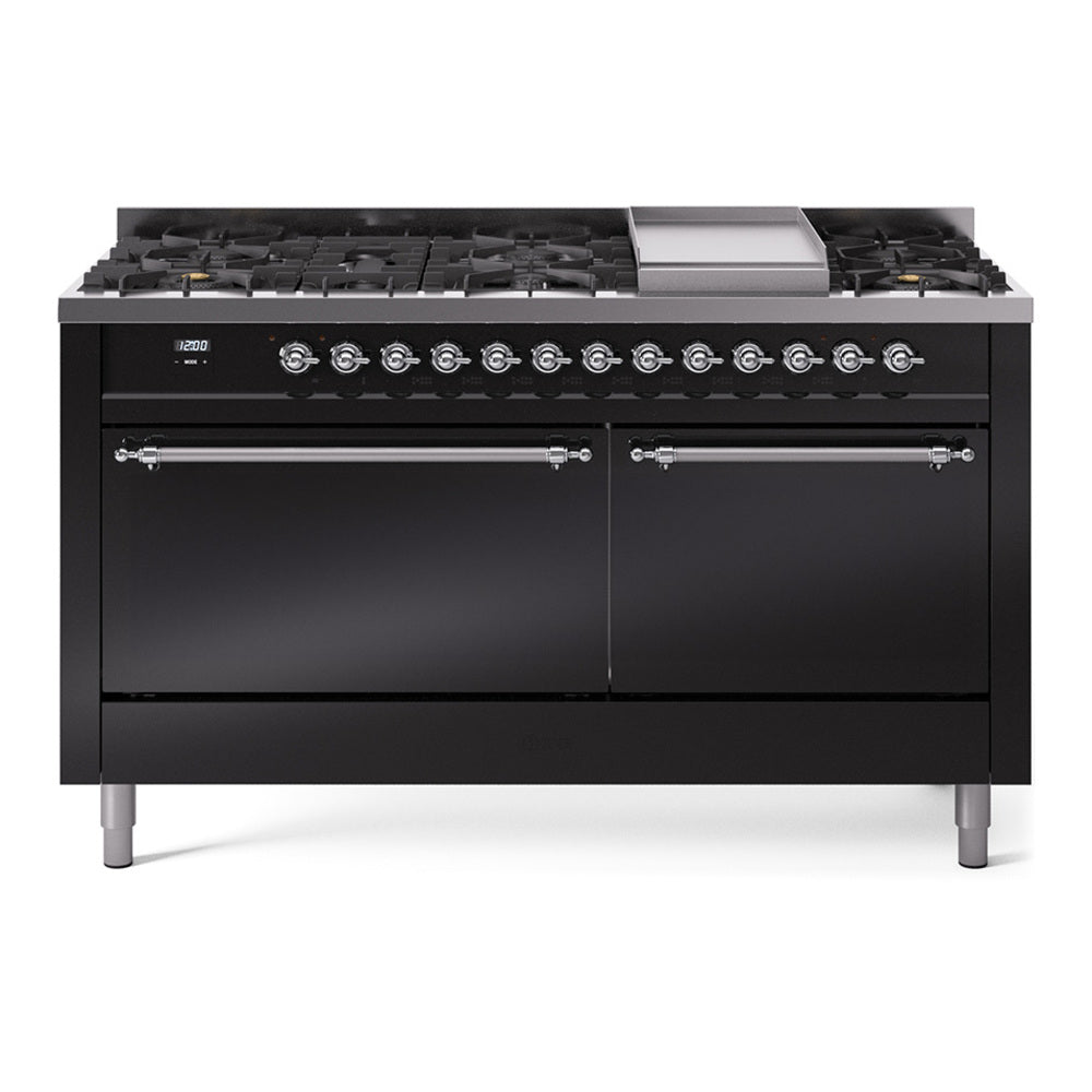 ILVE Nostalgie II 60" Dual Fuel Range with 9 Sealed Burners + Griddle Solid Door - UP60FQNMP