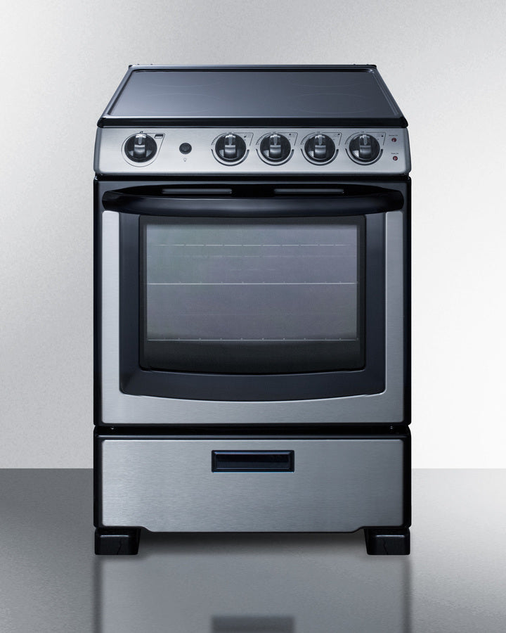 Summit 24" Wide Electric Smooth-Top Range in Stainless Steel - REX2451SSRT