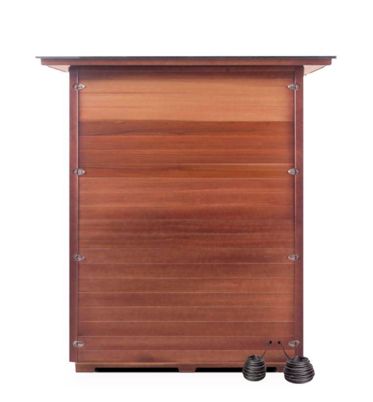 Recent research suggests that saunas such as this one are associated with increasing longevity. This modern combination of both types of heat is gaining in popularity and it is no surprise that hybrid saunas are becoming more desired in many homes. As a sturdy and simultaneously stunning looking sauna, thanks to the natural wood components it is a stylish addition to any house.