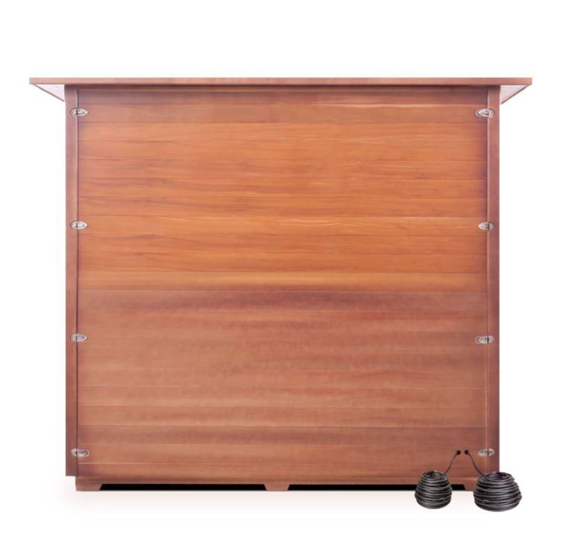 As a spacious sauna, it seats 5 persons comfortably and this sauna could be used for some kind of exercise if sweating whilst sitting down and relaxing is not for you. This is a Diamond model, and like others, it makes full use of glass panels to use natural light and allows the visitors to see outside. As an outdoor model, this highly comfortable sauna is well-suited for outdoor use.