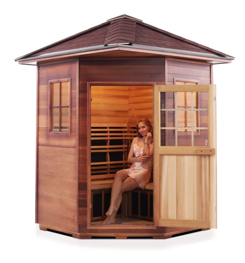 Got a space? Ah, the fun part of considering your options when choosing your sauna. 4 Person Corner Sierra Canadian Cedar Outdoor Sauna is exceptional in its effectiveness and space efficiency. This sauna will fit perfectly in any corner of your outdoor space or home. Enjoy the space and the health benefits in style and comfort this sauna offers. There truly isn't a better way of space-saving, then choosing this sauna style.