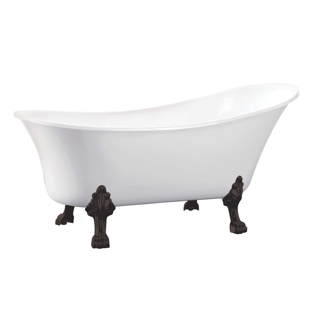 Kingston Brass Aqua Eden 51-Inch Acrylic Single Slipper Clawfoot Tub (No Faucet Drillings), White/Oil Rubbed Bronze VTND512824C5