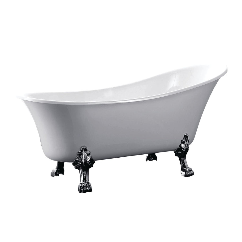 Kingston Brass Aqua Eden 51-Inch Acrylic Single Slipper Clawfoot Tub (No Faucet Drillings), White/Polished Chrome VTND512824C1