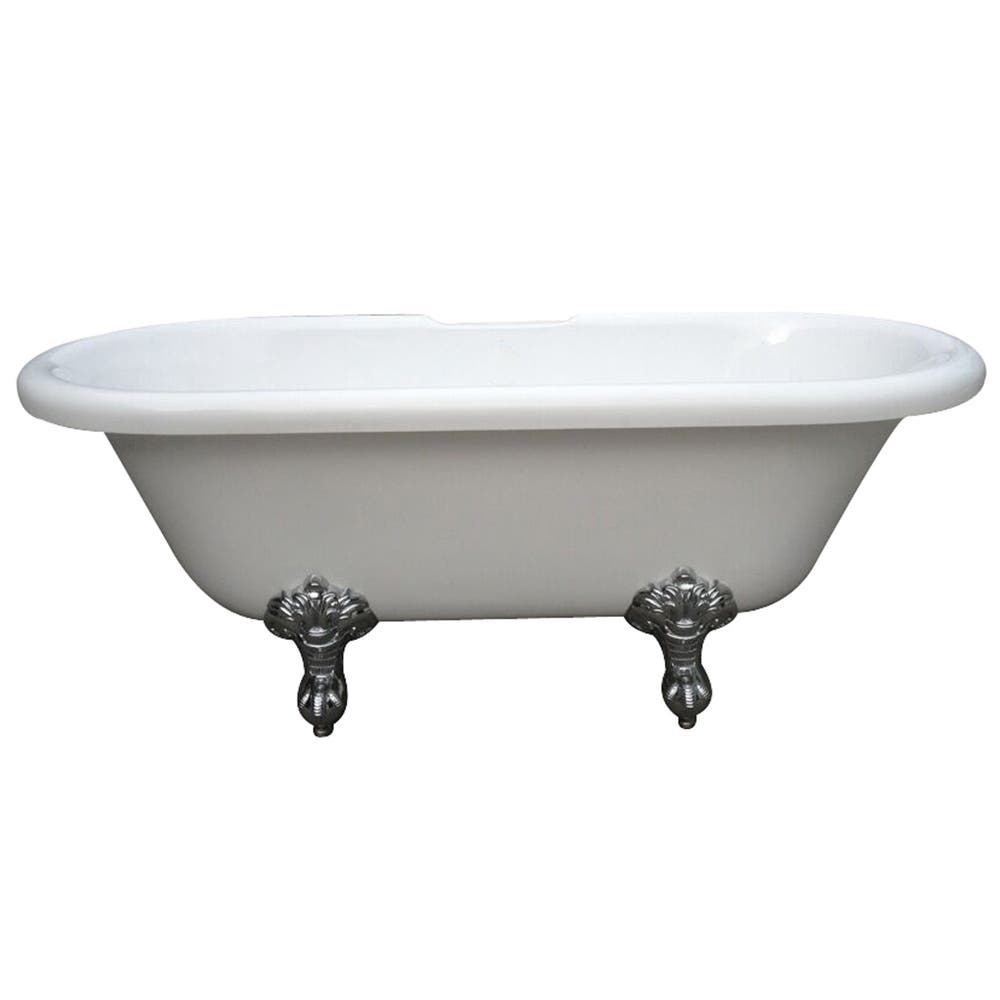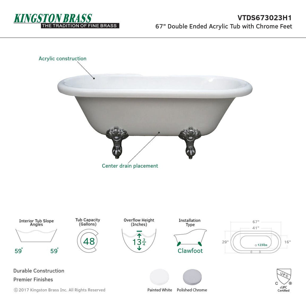 Kingston Brass Aqua Eden 67-Inch Acrylic Double Ended Clawfoot Tub (No Faucet Drillings), White/Polished Chrome VTDS673023H1