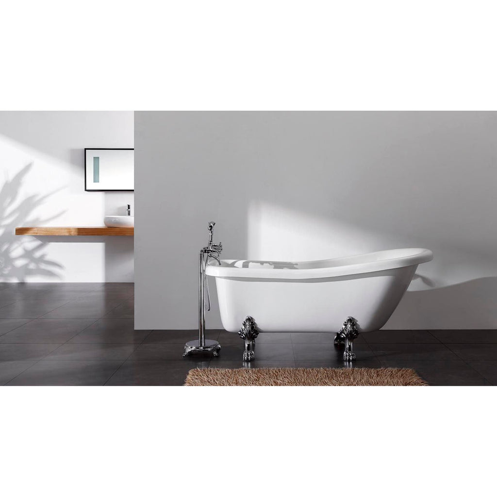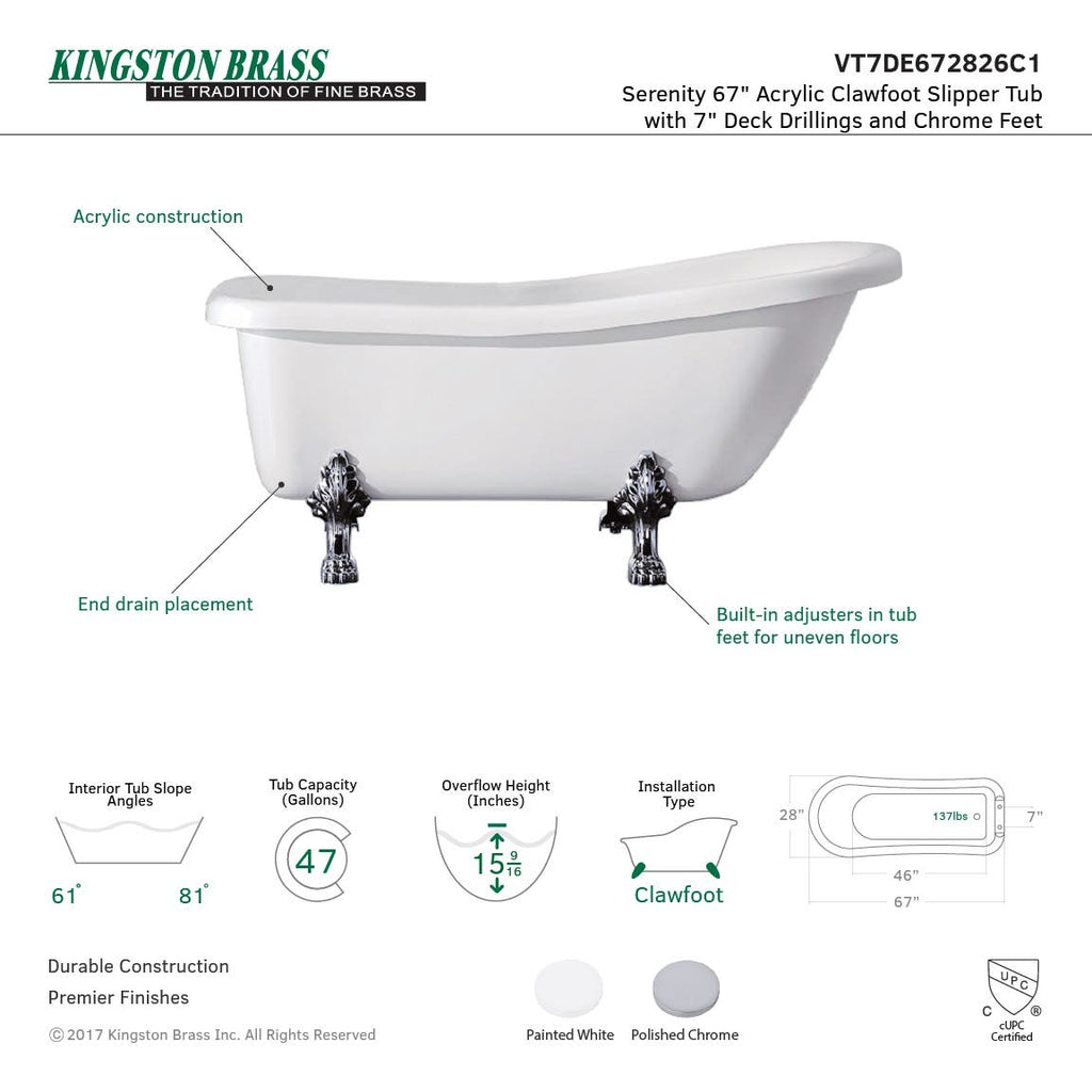 Kingston Brass Aqua Eden 67-Inch Acrylic Single Slipper Clawfoot Tub with 7-Inch Faucet Drillings, White/Polished Chrome VT7DE672826C1