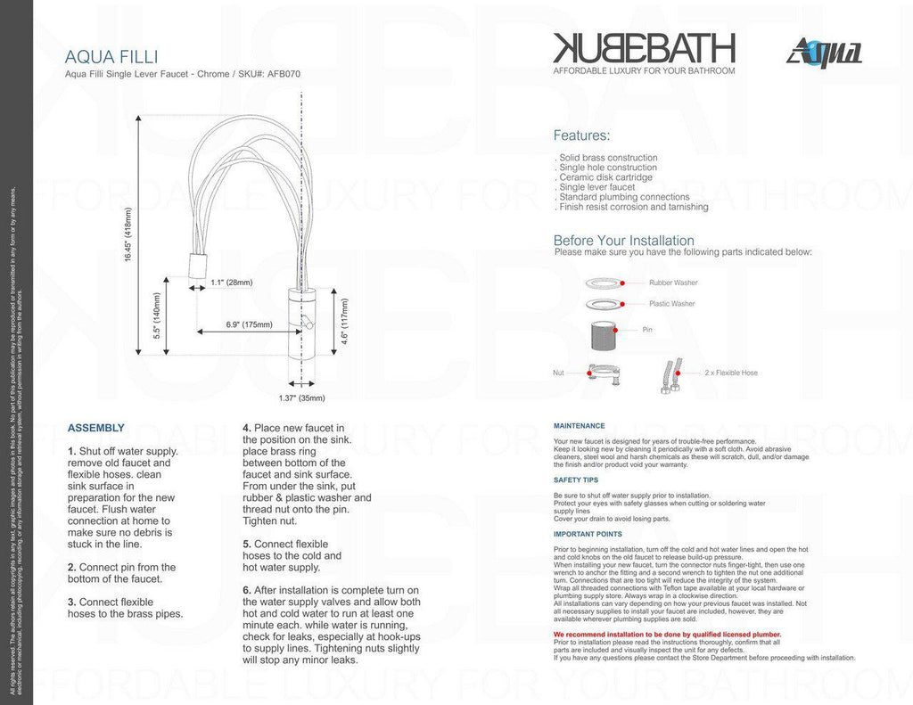 KubeBath Aqua Filli Single Lever Bathroom Vanity Faucet - Chrome , AFB070