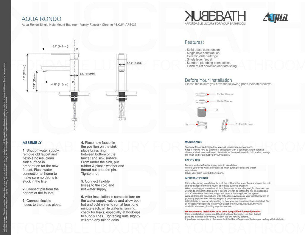 KubeBath Aqua Roundo Single Hole Mount Bathroom Vanity Faucet - Chrome, AFB033