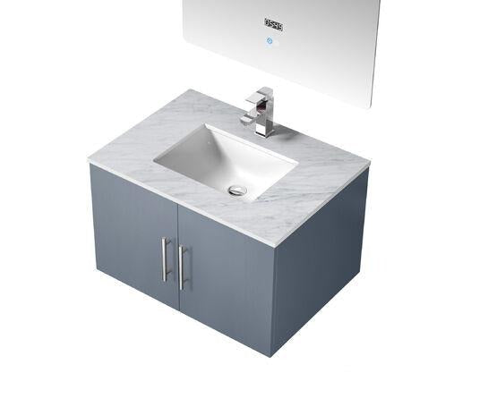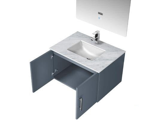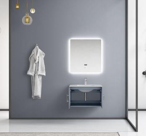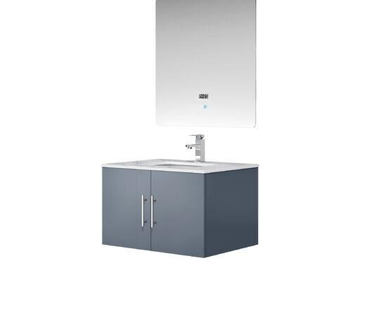 Lexora Geneva 30" Dark Grey Single Vanity, White Carrara Marble Top, White Square Sink and 30" LED Mirror w/ Faucet LG192230DBDSLM30F