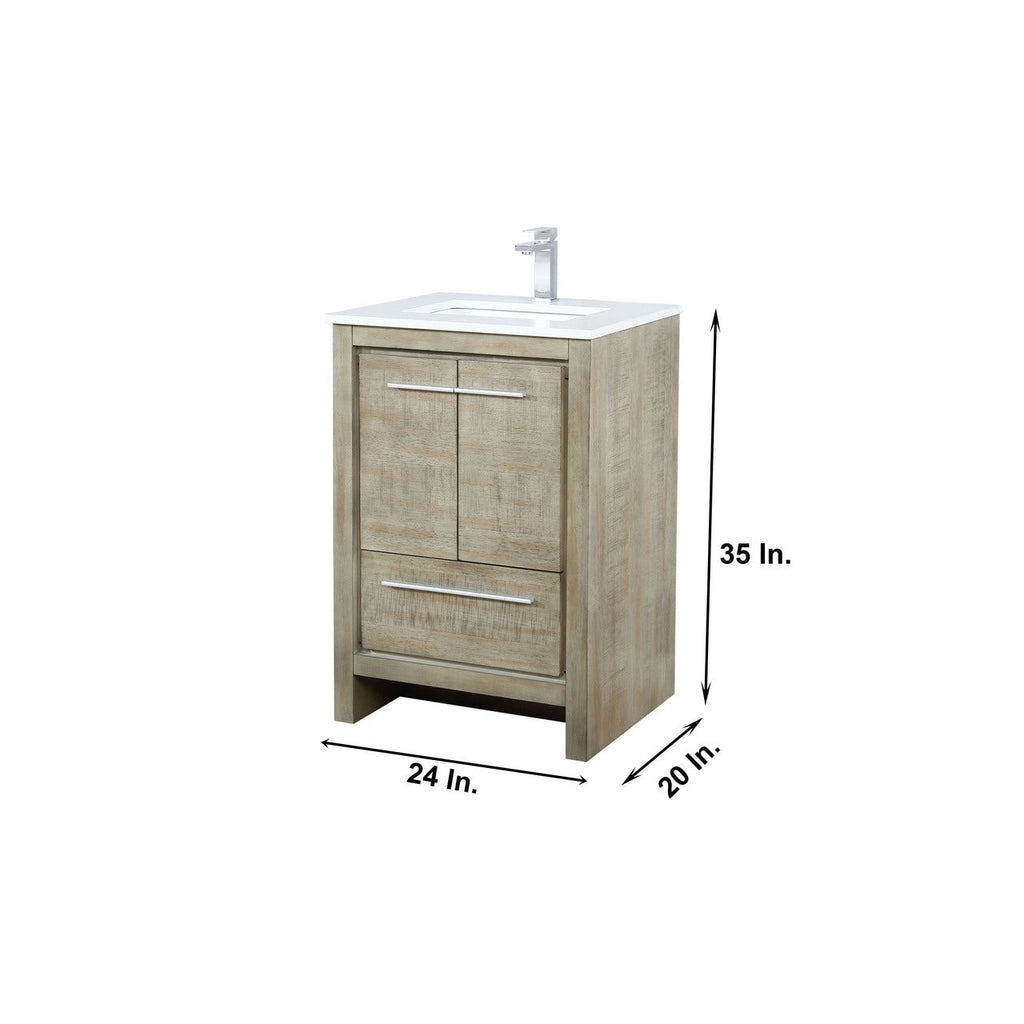 Lexora Lafarre 24" Rustic Acacia Bathroom Vanity, White Quartz Top, White Square Sink, Balzani Gun Metal Faucet Set, and 18" Frameless Mirror LLF24SKSOSM18FGM