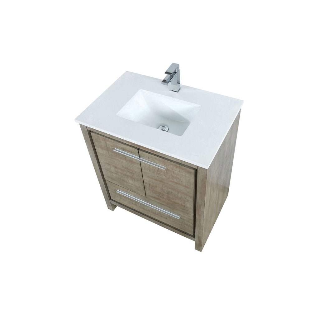 Lexora Lafarre 30" Rustic Acacia Bathroom Vanity, White Quartz Top, White Square Sink, and Labaro Rose Gold Faucet Set LLF30SKSOS000FRG