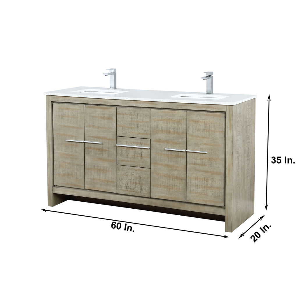 Lexora Lafarre 60" Rustic Acacia Double Bathroom Vanity, White Quartz Top, White Square Sinks, and Labaro Brushed Nickel Faucet Set LLF60DKSOD000FBN