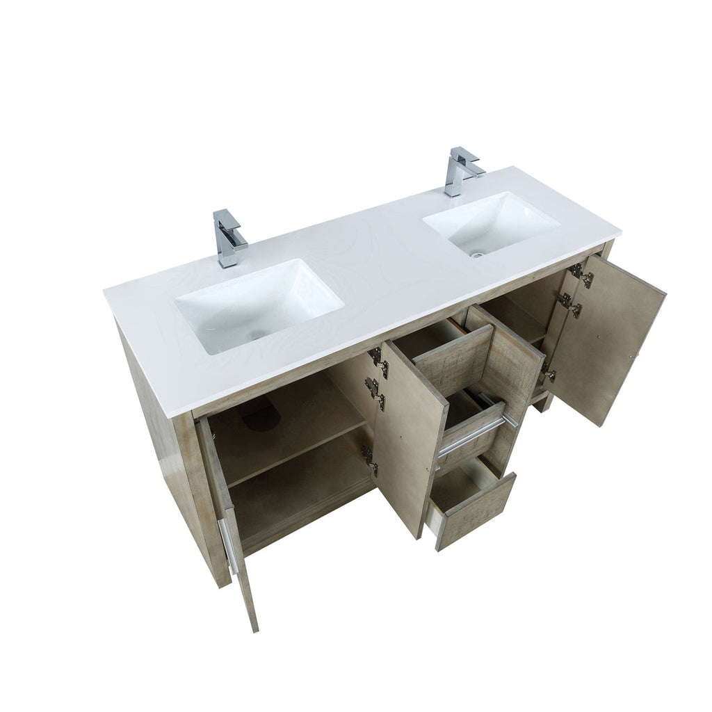 Lexora Lafarre 60" Rustic Acacia Double Bathroom Vanity, White Quartz Top, White Square Sinks, and Labaro Rose Gold Faucet Set LLF60DKSOD000FRG