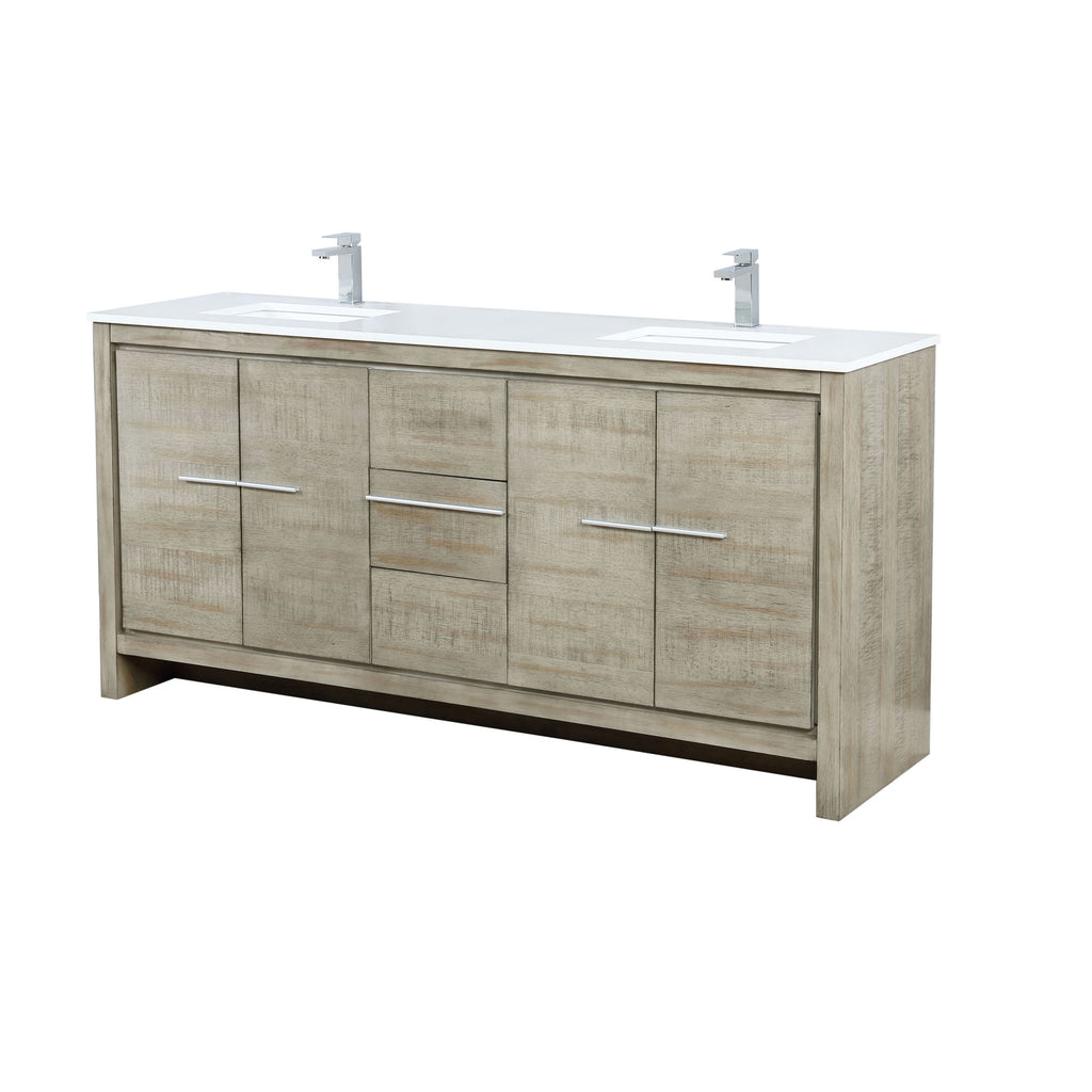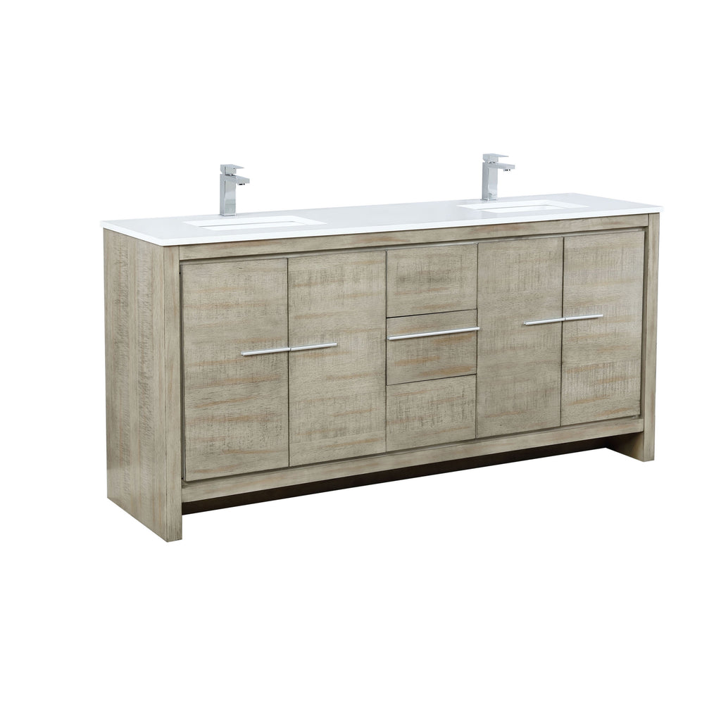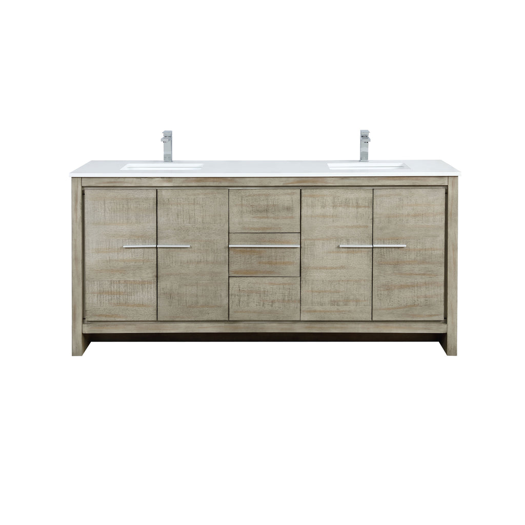 Lexora Lafarre 72" Rustic Acacia Double Bathroom Vanity, White Quartz Top, White Square Sinks, and Labaro Rose Gold Faucet Set LLF72DKSOD000FRG