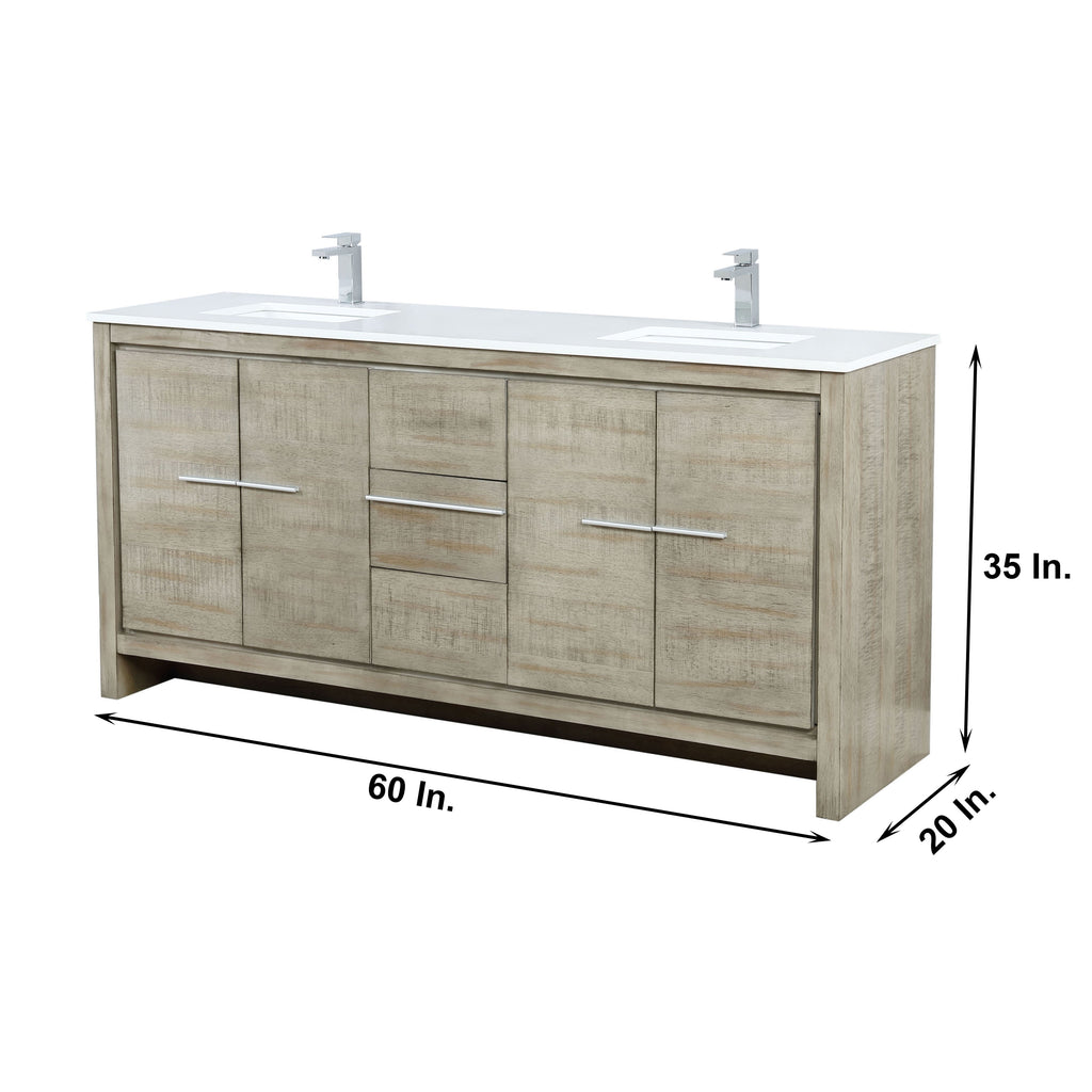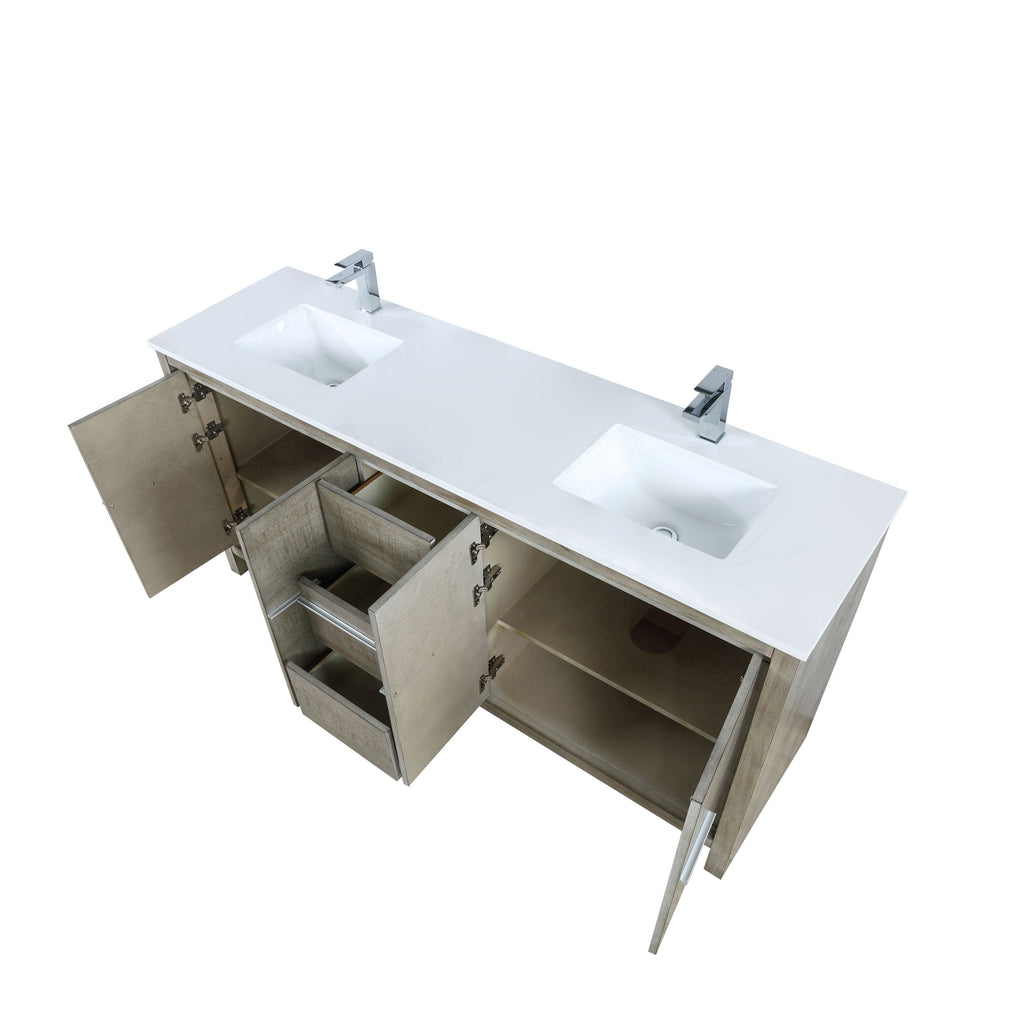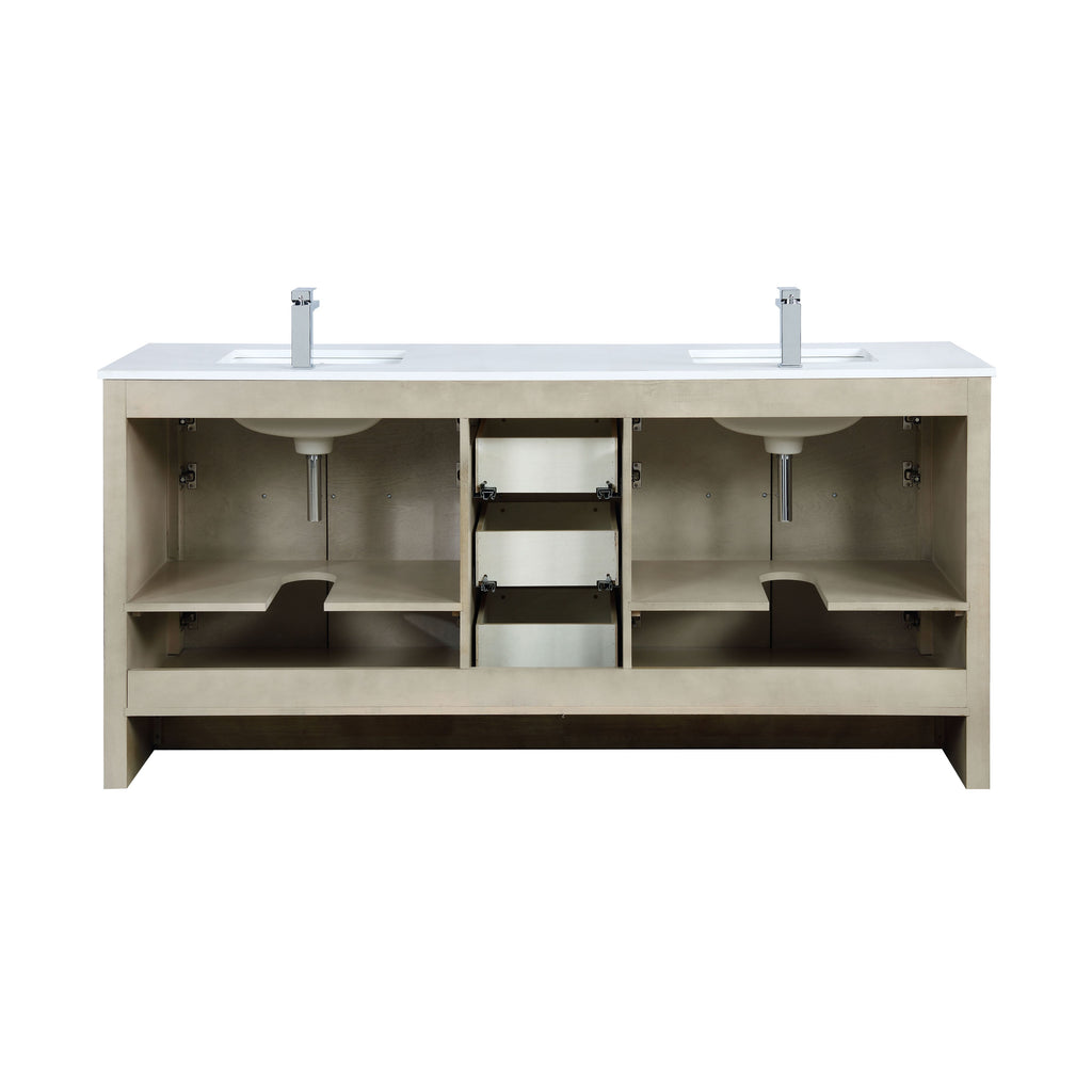 Lexora Lafarre 72" Rustic Acacia Double Bathroom Vanity, White Quartz Top, White Square Sinks, and Labaro Rose Gold Faucet Set LLF72DKSOD000FRG