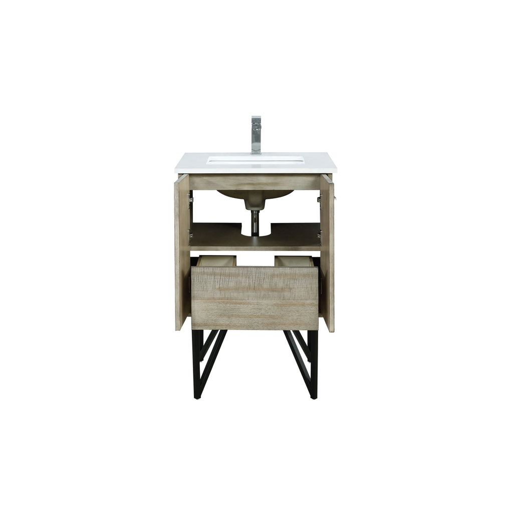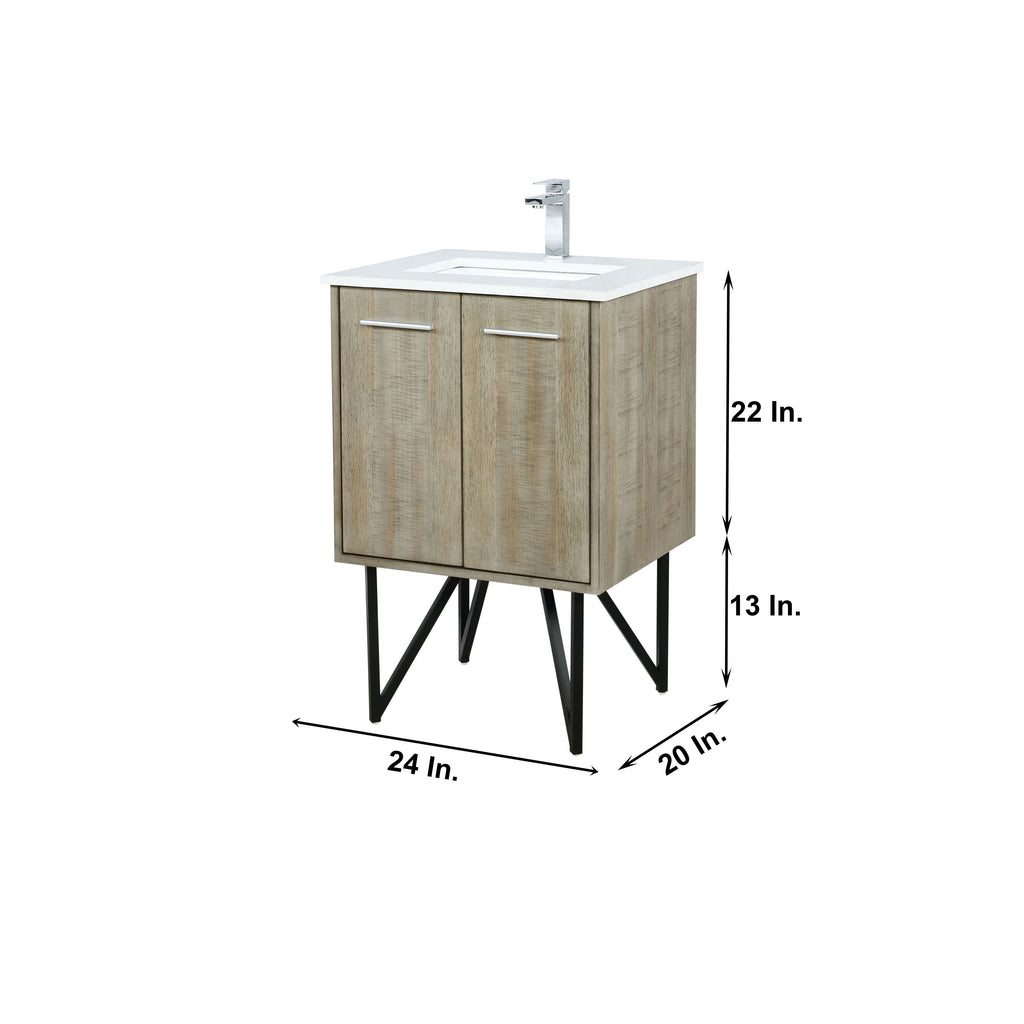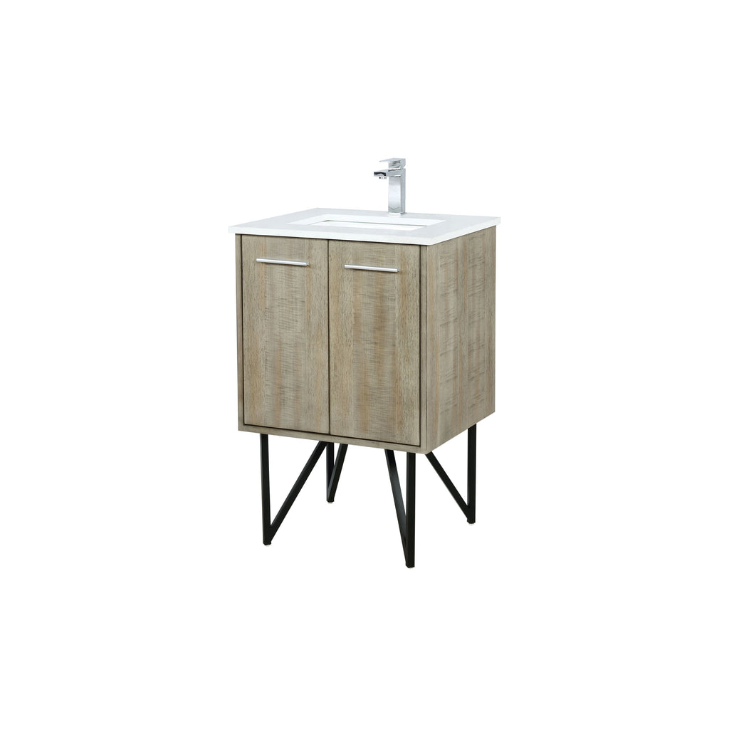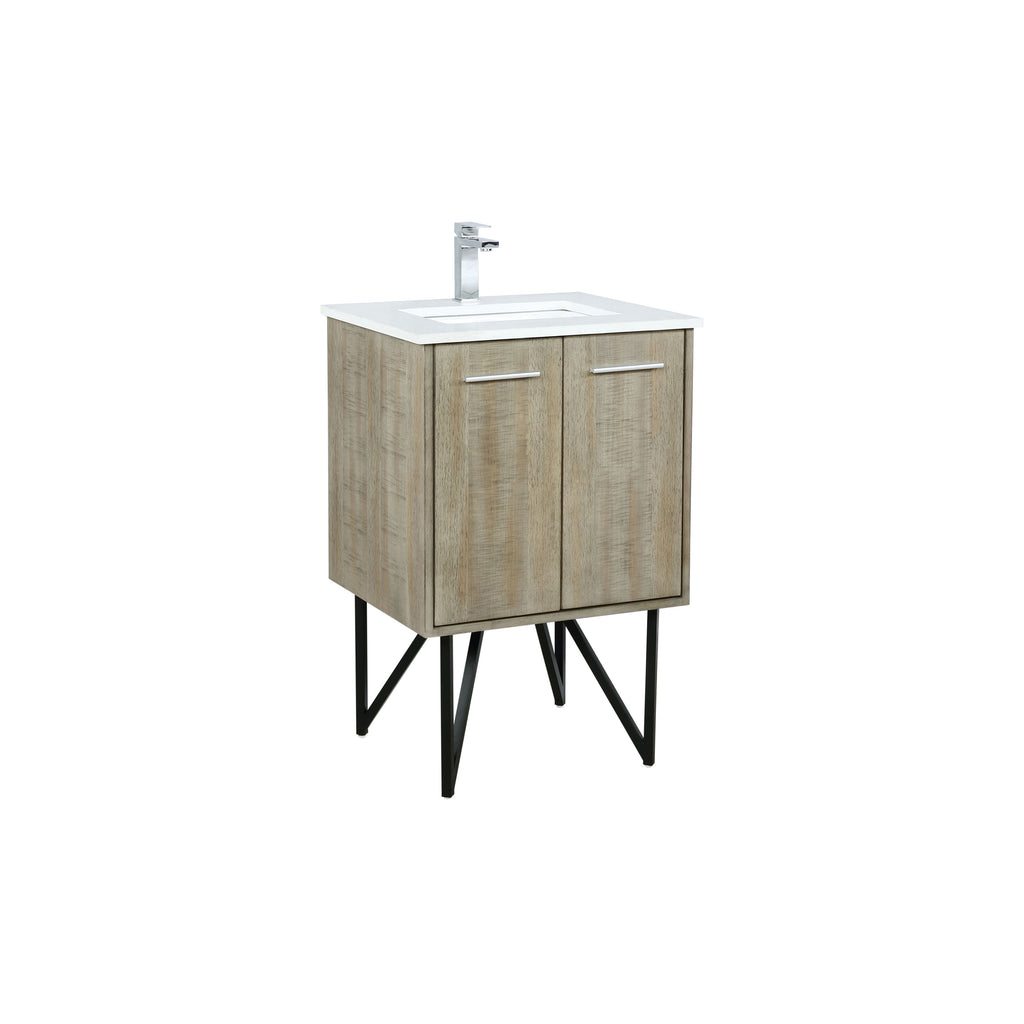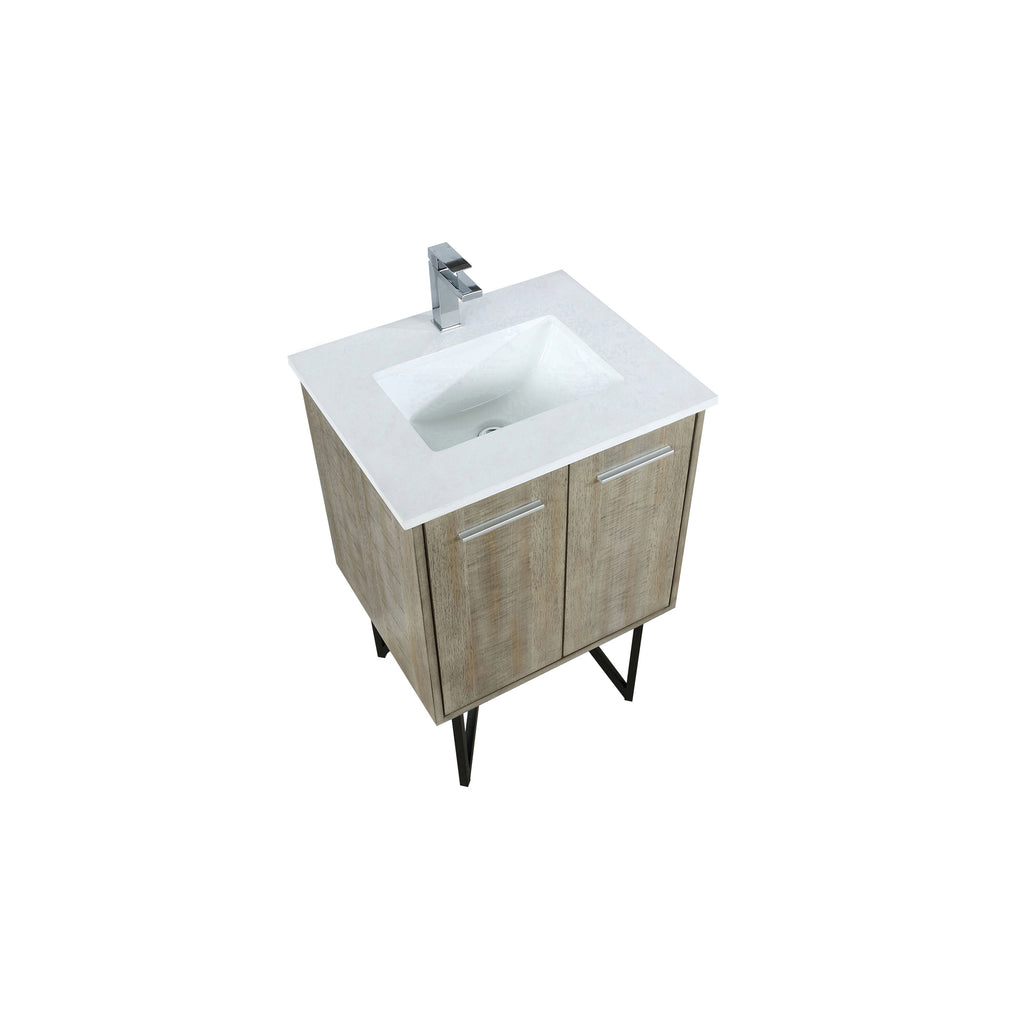 Lexora Lancy 24" Rustic Acacia Bathroom Vanity, White Quartz Top, White Square Sink, and Labaro Brushed Nickel Faucet Set - LLC24SKSOS000FBN