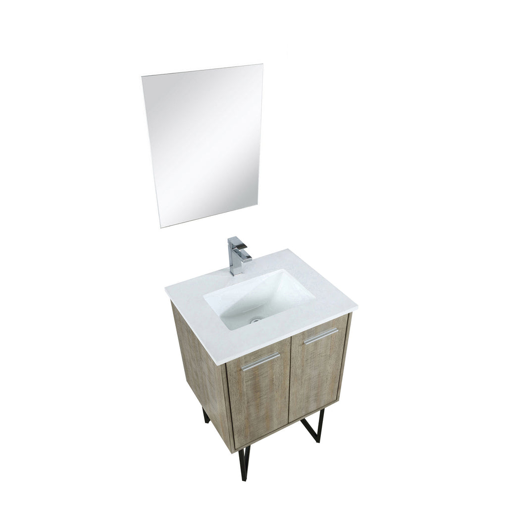 Lexora Lancy 24" Rustic Acacia Bathroom Vanity, White Quartz Top, White Square Sink, Labaro Rose Gold Faucet Set, and 18" Frameless Mirror LLC24SKSOSM18FRG