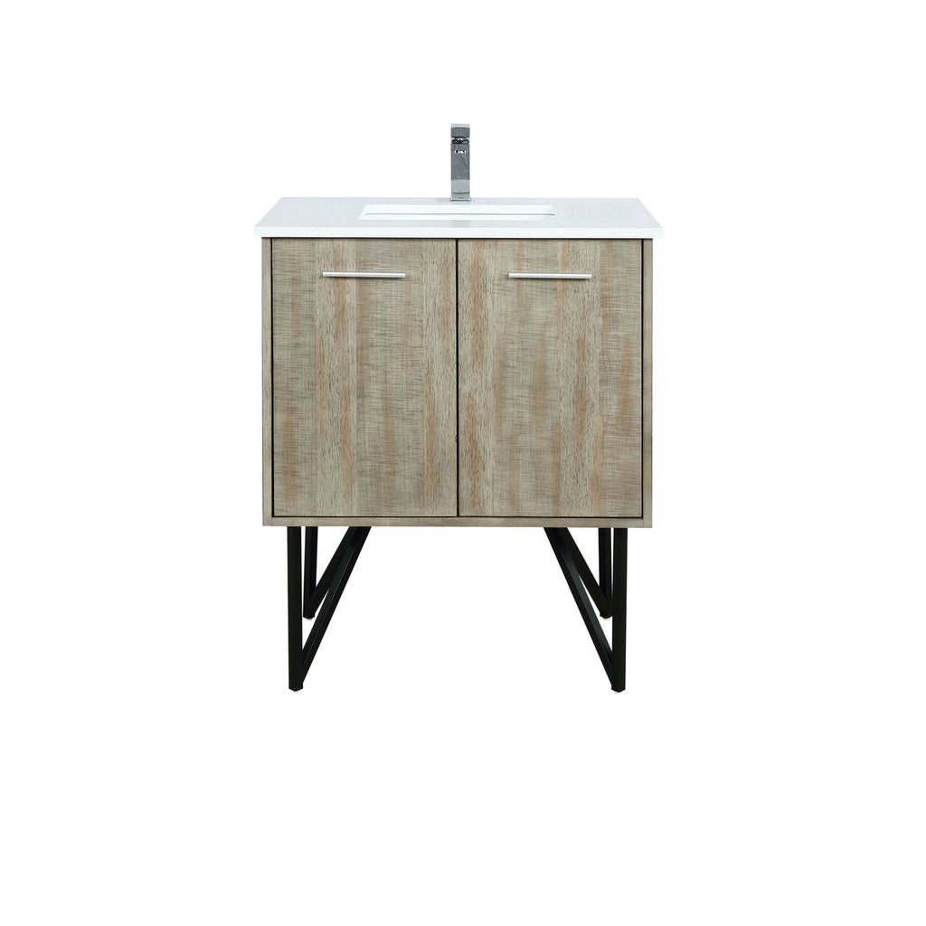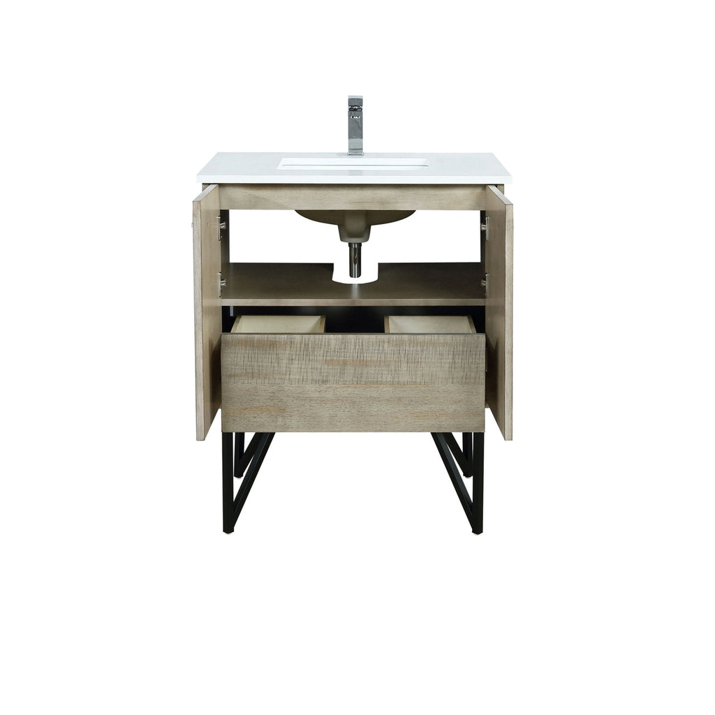 Lexora Lancy 30" Rustic Acacia Bathroom Vanity, White Quartz Top, White Square Sink, and Labaro Rose Gold Faucet Set LLC30SKSOS000FRG