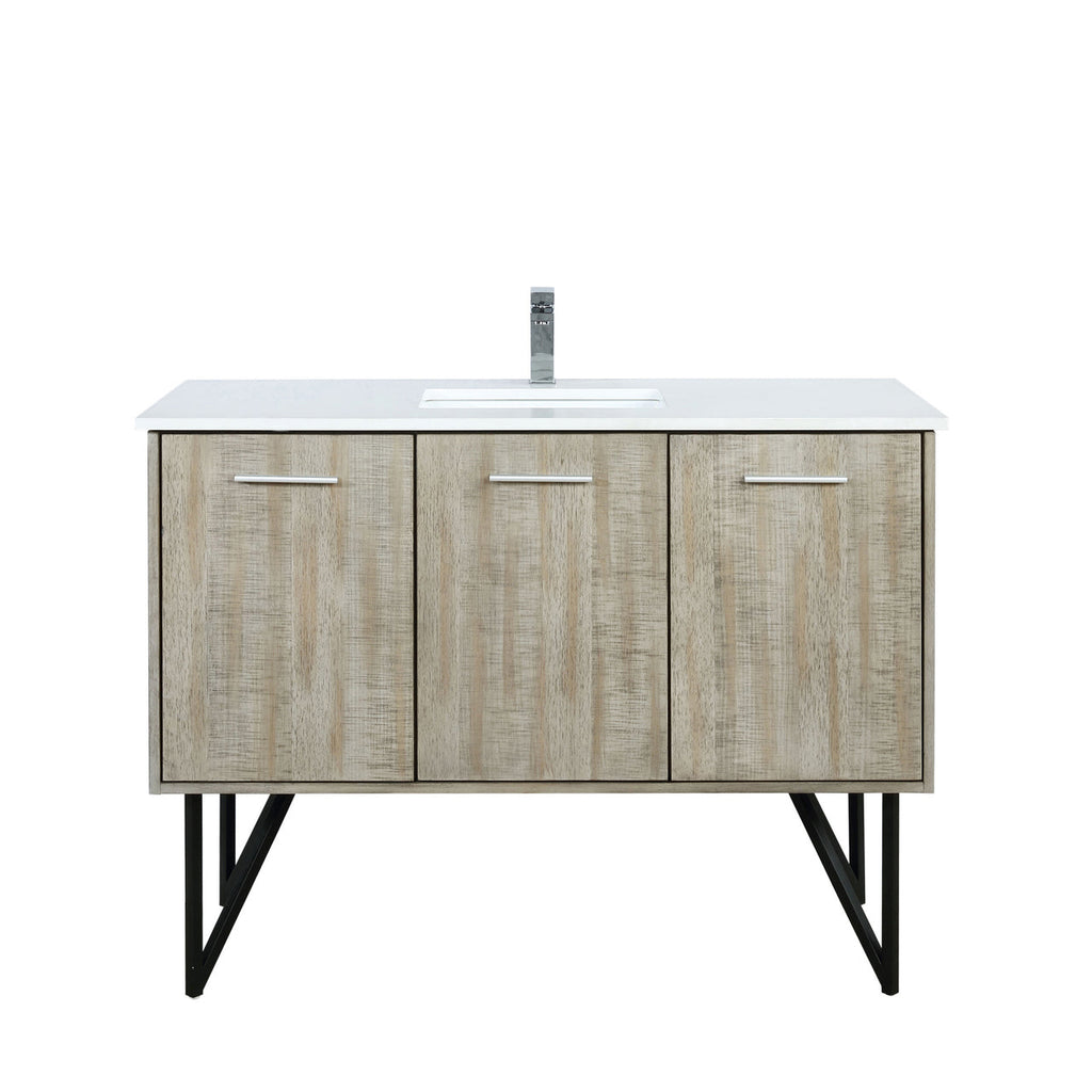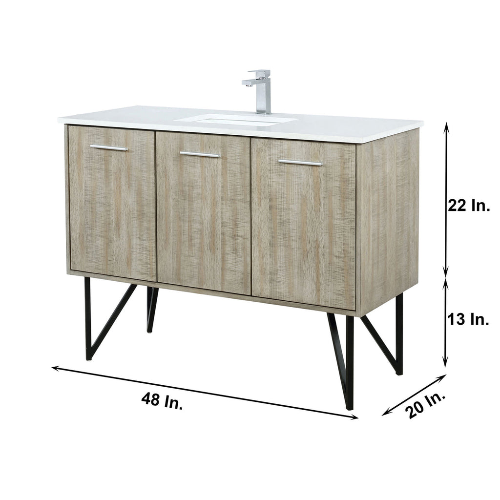 Lexora Lancy 48" Rustic Acacia Bathroom Vanity, White Quartz Top, White Square Sink, and Balzani Gun Metal Faucet Set LLC48SKSOS000FGM