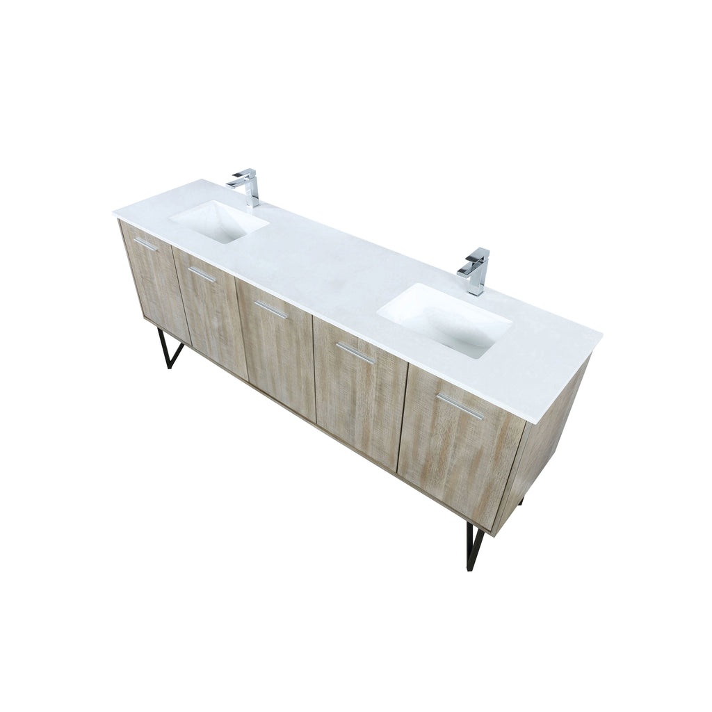 Lexora Lancy 80" Rustic Acacia Double Bathroom Vanity, White Quartz Top, White Square Sinks, and Labaro Brushed Nickel Faucet Set LLC80DKSOS000FBN